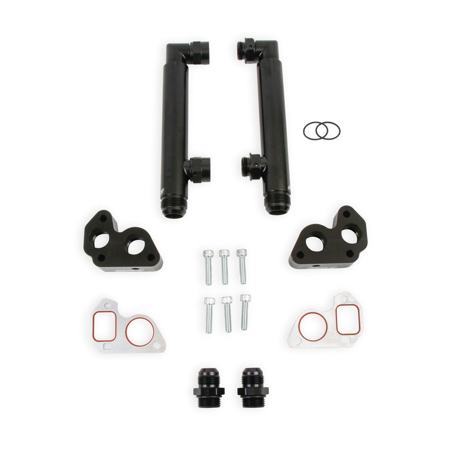 These new billet block adapters allow the use of a big block Chevy electric water pump on the GM LS engine. These adapters feature (2) -12 AN O-ring female outlet ports for routing coolant back to the radiator. The 1/8" NPT port on the sides of the adapters allow a convenient hook-up for the steam tube outlet (eliminates modification of the radiator or water pump when installing the steam tube plumbing). This part includes the two block adapters, gaskets and mounting bolts.